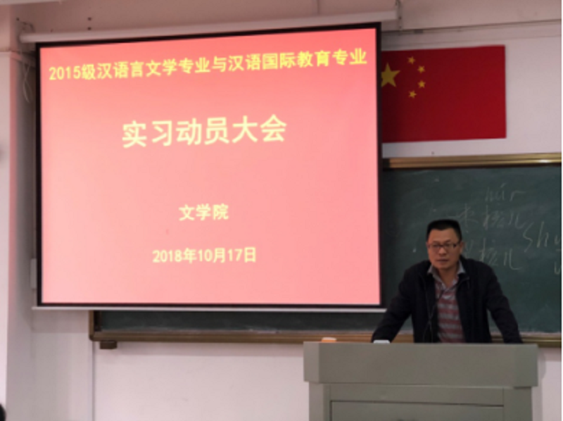 10月17日下午3点,william威廉中文在文科楼1109教室召开汉语言文学专业与汉语国际教育专业实习动员大会。本次会议由院党委书记李志刚主持,院长谭杰、学工办主任肖放亮、各班班主任以及实习指导老师出席,全体汉语言文学专业和汉语国际教育专业的实习学生参加。