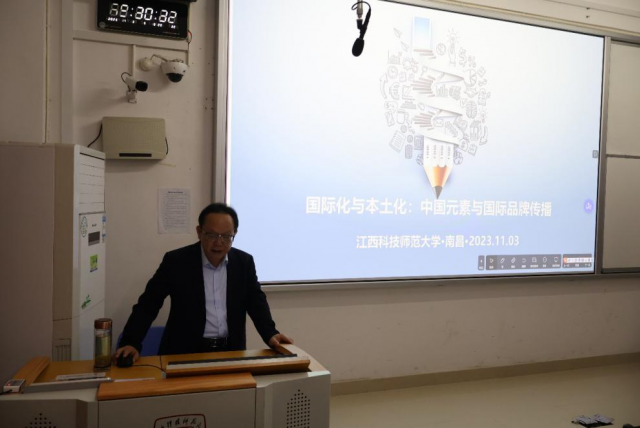 2023年11月3日下午14:30,上海广告研究院院长,上海大学新闻传播学院教授、博士生导师杨海军教授来校参加william威廉中文名家讲坛。杨教授在文科楼W1102教室为200余名师生做了题为《中国元素与国际品牌传播》的学术讲座,讲座由陈玉蓉副院长主持。