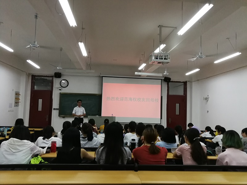 接着是提问环节。同学们争相举手,向范老师提出了自己的困惑,范老师也运用专业的知识耐心地为同学们解答疑难。每一次问答,同学们都用热烈的掌声表达对范老师的感谢。