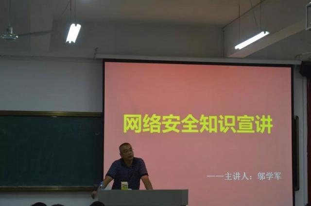 邬学军副书记结合自身经验展开网络安全宣讲,告诉同学们要依法上网,文明上网,自觉抵御网络不良信息,不散布和传播谣言,始终坚定着崇高的信仰,承担起维护网络安全的重任。