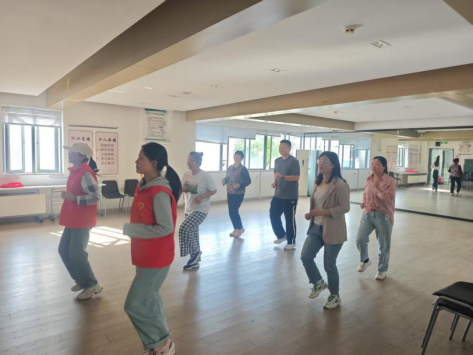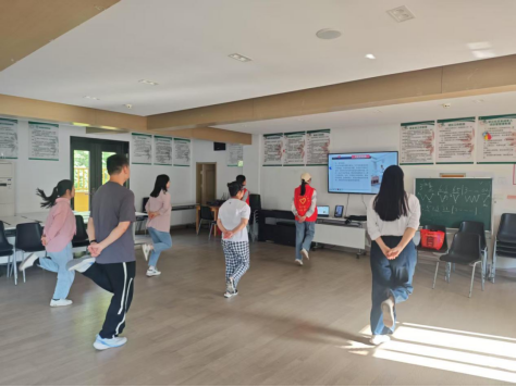 在燃脂操教学环节,志愿者们化身活力教练,带领全体居民跟随动感音乐节奏舒展身体、激情舞动。现场气氛热烈欢快,居民们全身心投入,在汗水挥洒中感受运动带来的愉悦。"虽然跳得气喘吁吁,但全身筋骨都舒展开了,这种健康又有趣的活动真是太好了!"社区居民王女士的真切感言,道出了参与者的共同心声。教学过程中,志愿者始终关注居民的身体状态,反复提醒大家根据自身情况调整运动强度,特别强调避免高难度动作和过度运动,积极倡导"循序渐进、科学锻炼"的健康运动理念。