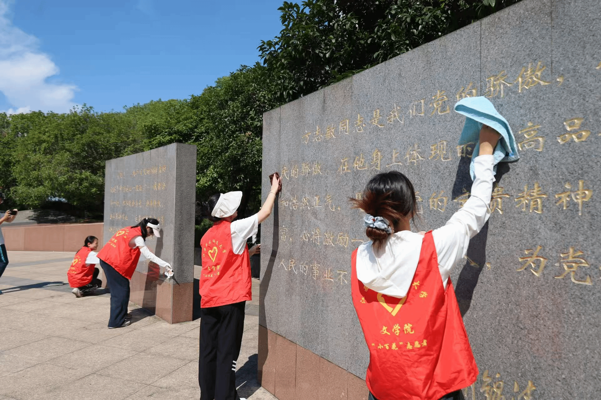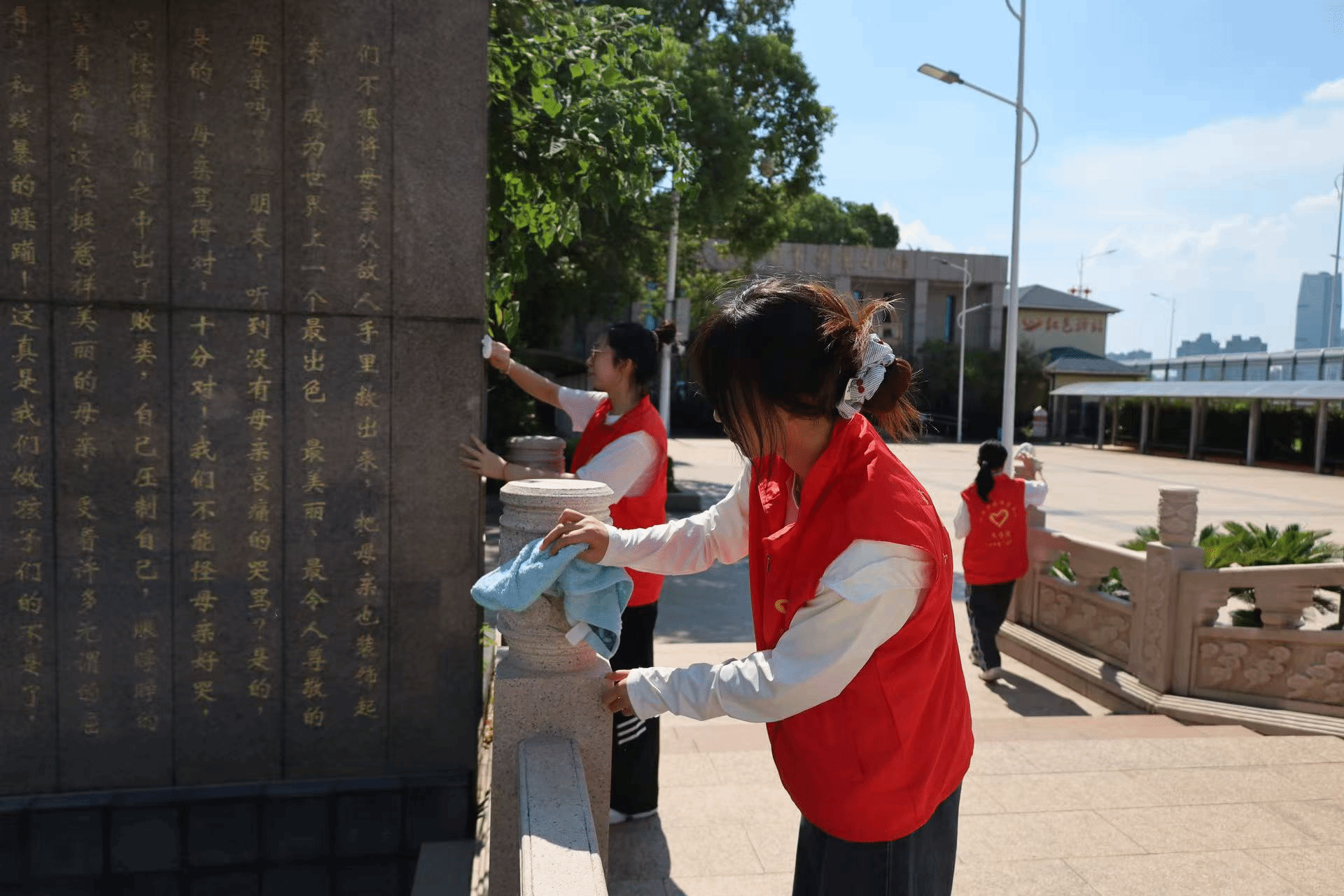 在志愿服务环节,团员青年们积极投身实践,分组对广场进行了细致清扫。大家手持清洁工具,认真擦拭方志敏雕像及周边展板,细致清理卫生死角。活动中,同学们分工明确、配合默契,用实际行动守护红色阵地,以劳动践行初心,以奉献书写华章。