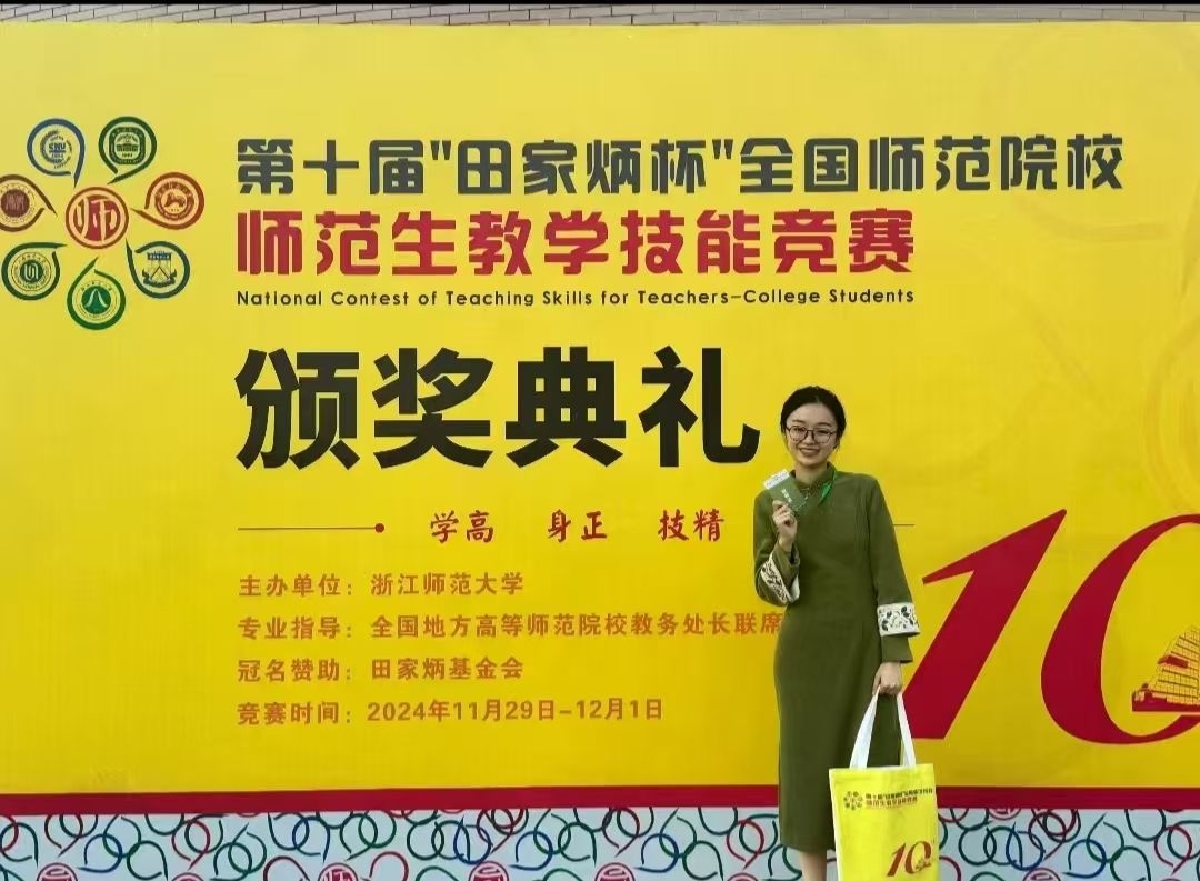 通过参与全国师范院校师范生教学技能竞赛,谢童颖的视野得到了极大拓展。在这场汇聚了全国各地优秀师范生的竞技舞台上,通过交流与学习,谢童颖深刻认识到自己还有很大的提升空间,对未来的发展也有了明确的方向。这次比赛的经历成为其持续学习、不断提升自我的动力。她认识到深入研读教材的重要性,要对比赛所涉及的课文内容熟练掌握,要善于利用互联网资源,观摩优秀教师的教学视频,模仿其教姿教态,学习他们的教学思路和方法,以此提升教学技巧和水平。在学习他人优点的同时,要逐渐形成自己独特的教学风格。谢童颖认为,夯实基础和借鉴学习,不仅是在教师技能比赛中取得优异成绩的法宝,更是教师在教学道路上稳步前行的必备技能。未来,谢童颖将深耕语文教学领域,坚守教育一线,秉持寓教于乐、寓学于趣的教学观念,以厚积薄发、严于律己的态度,在教育之路上发挥自己的光与热。