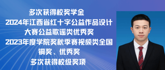 李杰,男,中共党员,2021级广告学专业(含职教师范)班,担任2021级广告学(含职教师范)班长职务。在校四年期间共获得一次一等奖学金、一次二等校奖学金、三次三等奖学金,荣获“三好学生”“优秀学生干部”“先进个人”等称号。在思政第一课堂与第二课堂融合实践教学活动中获得一等奖。在2024年江西省红十字公益作品设计大赛中荣获公益歌谣类优秀奖。在2023年度学院奖秋季赛中荣获视频类全国铜奖、三次优秀奖。现已录用为信丰县某某镇人民政府公务员。