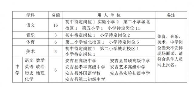 根据《浙江省安吉县招聘2023年教师公告(第2号)》《浙江省安吉县招聘2023年教师公告(第3号)》内容,我县组团赴江西师范大学现场择优招聘事业编制教师34名,具体招聘事项公告如下