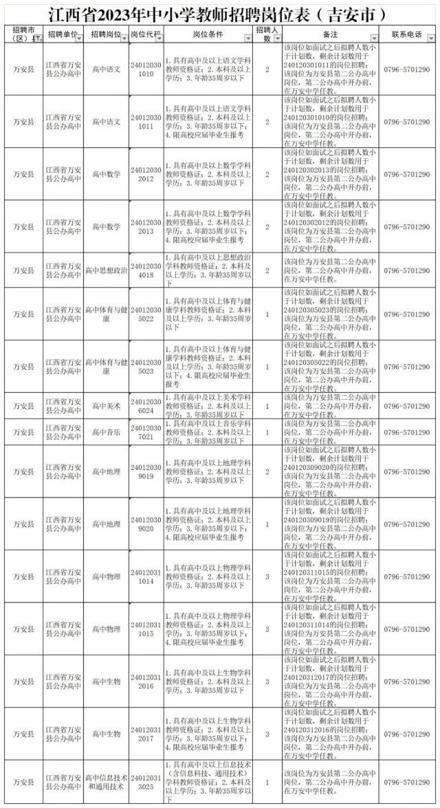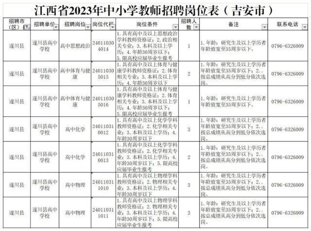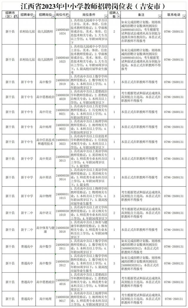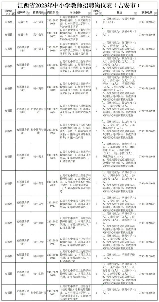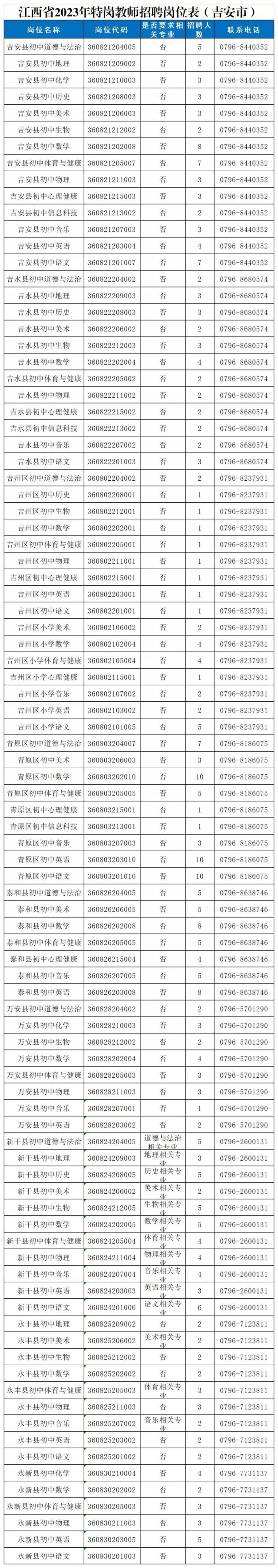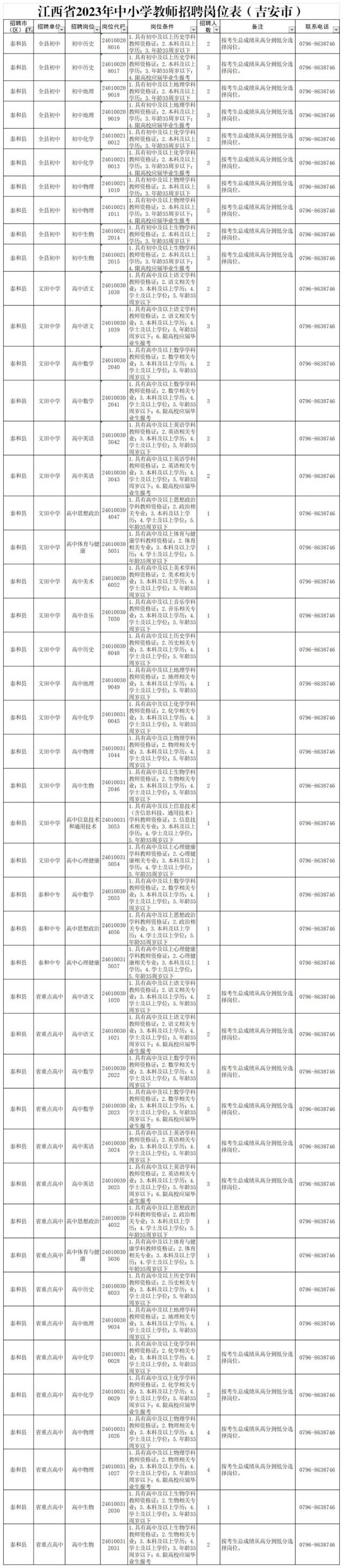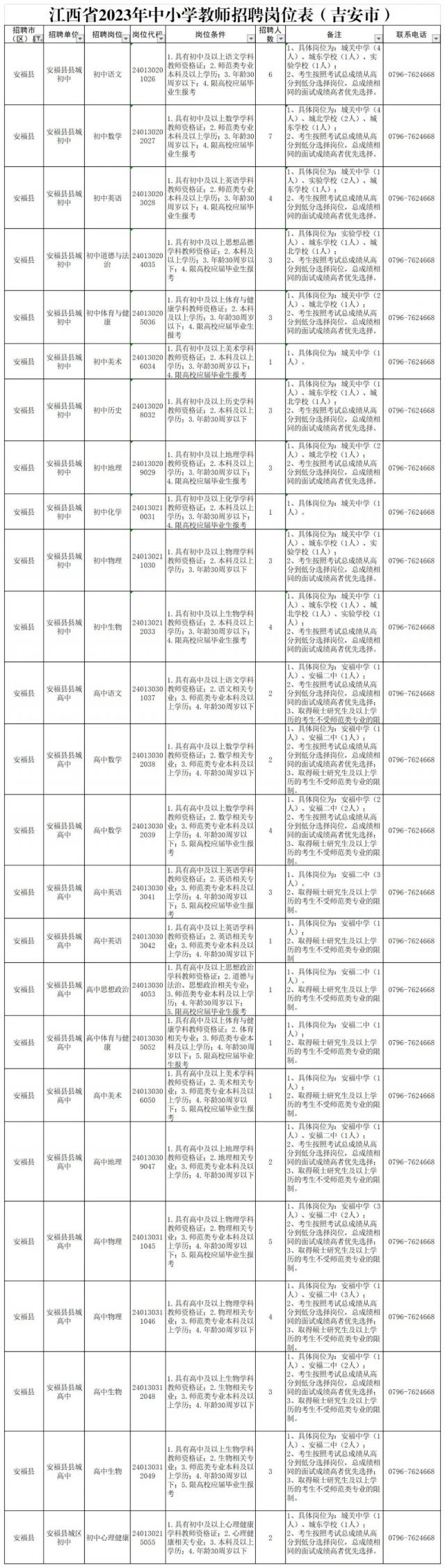 近日省教育厅、省人力资源和社会保障厅发布《江西省2023年中小学教师招聘公告》《江西省2023年“农村义务教育阶段学校教师特设岗位计划”教师招聘公告》2023年全省中小学教师招聘计划共7821名其中,吉安市招聘734名,2023年全省中小学特岗教师招聘计划共3146名,其中,吉安市招聘311名。