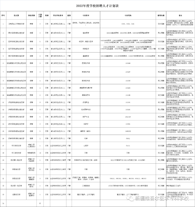 计划招聘人数138人,学校本部计划招聘85人,其中教师59人(优先博士、硕士),专职辅导员14人(中共党员,优先硕士),教辅人员12人(其中,心理咨询室1人、图书馆5人、编辑部3人、后勤基建科1人、财务人员1人、统战部1人),学校岗位详见附件1(体制外);学校附属医院计划招聘43人,岗位详见附件2(体制外);学校附属幼儿园计划招聘10人,岗位详见附件3(体制外)。