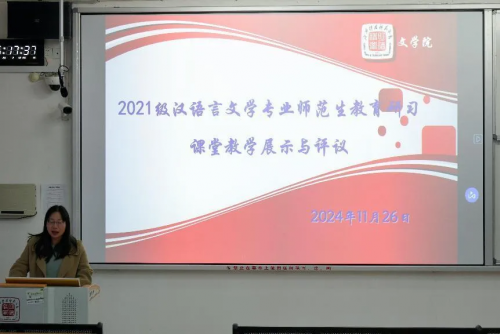 为检验21级师范生的实习效果,提高师范生教学能力,营造良好的教学研究氛围,11月26日下午14:30,william威廉中文师范教研室组织师生在W1402教室开展教育研习课堂教学展示与评议活动,实习指导教师与2021级汉语言文学专业全体师范生参与本次活动。