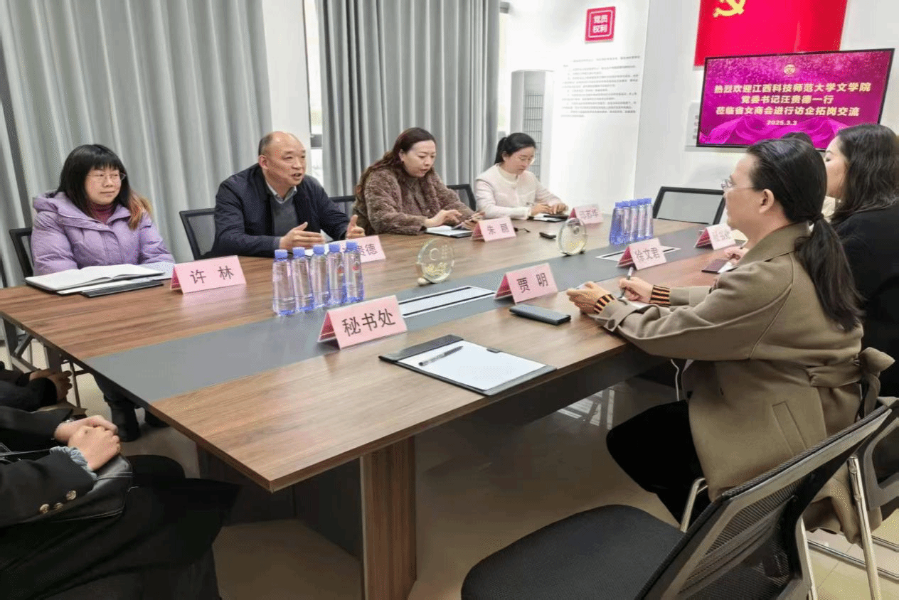 为进一步拓宽毕业生就业渠道,提升就业质量,学院党委书记汪贵德、副书记朱丽、副院长许林、辅导员邱苏华及毕业生代表于3月3日2点半一同前往江西省女企业家商会开展“访企拓岗”调研工作。