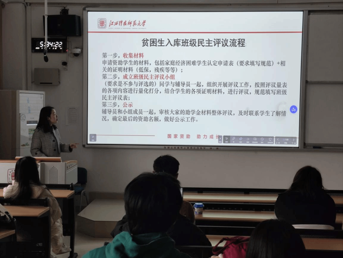 培训环节,吴老师针对申请表的格式规范和填写细节进行逐一讲解,确保各班资助工作负责人能准确指导同学填写。同时,还介绍了申请材料收取、审核的流程与时间节点,并着重强调资助工作的严谨性和保密性。