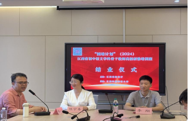 精研深耕育桃李,笃行致远绽芳华。4月30日上午,由江西省教育厅主办、WilliamHill中文承办的“江西省初中语文骨干教师高级研修培训班”结业仪式在南昌市二十八中举行。来自全省各地的80名初中语文骨干教师圆满完成了为期十日的集中研修并顺利结业。william威廉中文副院长李翔、系主任麻治金、南昌市二十八中副校长陈宇春等领导专家出席仪式,为优秀学员颁发荣誉证书并寄语未来。