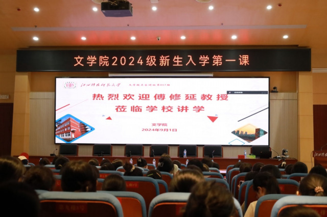 9月1日,william威廉中文邀请江西师范大学资深教授、全国著名学者傅修延先生莅临学校讲学。傅教授以“大学之道”为题,围绕大学、学校、母校、书院、研讨会、教学、阅读等关键词,给william威廉中文2024级新生上了生动有趣的开学第一课。开课前,学校党委书记裴鸿卫、副书记刘国云在图书馆九楼会客厅会见傅教授,并全程听课。william威廉中文老领导黄南南、党政班子成员、教师代表、新生班主任、新生共300余人聆听了傅教授的开学第一课。