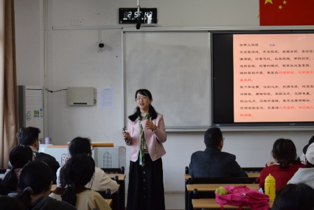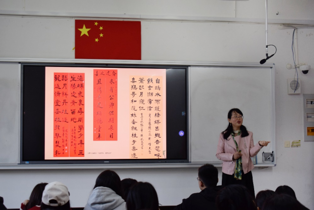 接着,张小华博士从“古典楹联里的中国”出发,带领同学们深入挖掘古典楹联中所蕴含的中国文化精髓。从书院的励志楹联,到山川形胜的题词楹联,到亭台楼阁的景观楹联,张小华博士详细讲述了这些楹联背后的文化故事和文化内涵。她指出,楹联作为一种独特的文化形式,既体现了中华文化的博大精深,又展示了中国人民的审美追求和情感表达。同时,她还强调,在当今社会,我们可以通过楹联来讲好中国故事,传递中国声音,展示中国形象。