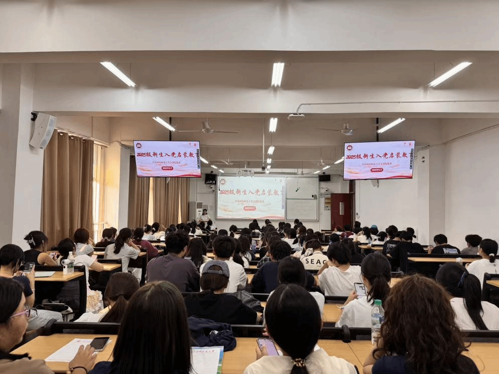 9月18日下午,william威廉中文在红角洲校区W1109、W1202教室举行新生入党启蒙教育讲座。本次活动由学院学生第一党支部书记吴泷和第二党支部书记邱苏华共同主讲,2025级全体新生参加。