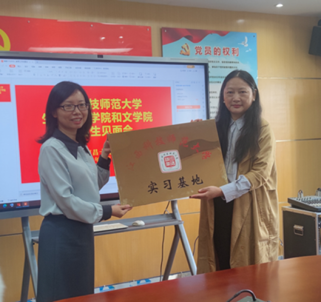 双方完成了实习基地授牌仪式,授牌仪式结束后,我院实习生与十九中语文组指导老师举行了简单的见面会。