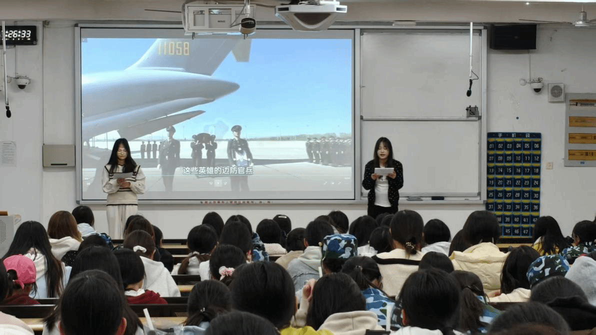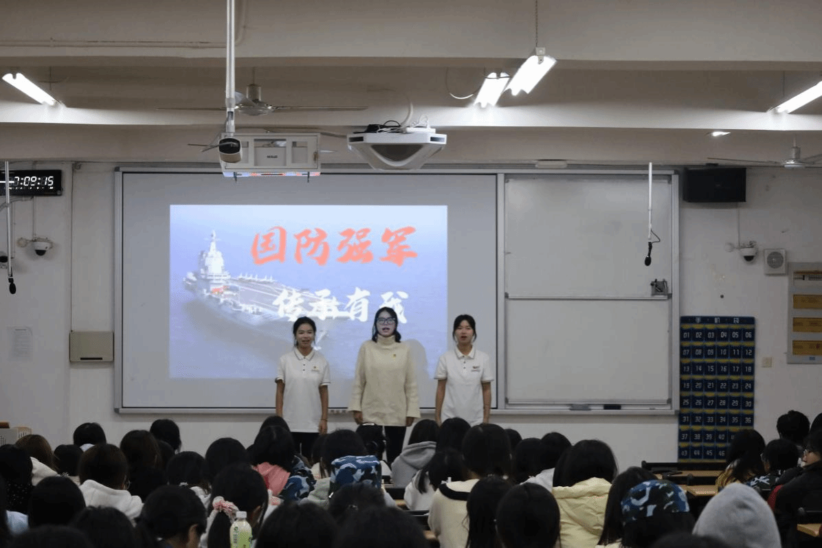 宣讲聚焦“国防与青春”主题,由学生党员、共青团员组成的七组学生骨干代表分别围绕海洋国防、空天安全、建军精神、历史传承等方向展开讲述。他们或结合案例阐述海洋权益维护的现实意义,或以历史为镜强调青年责任担当,从多元视角展现了国防建设的时代内涵与精神底蕴。演讲语言生动、案例翔实,将国防观念从抽象理念转化为青年可感可知的使命坐标。