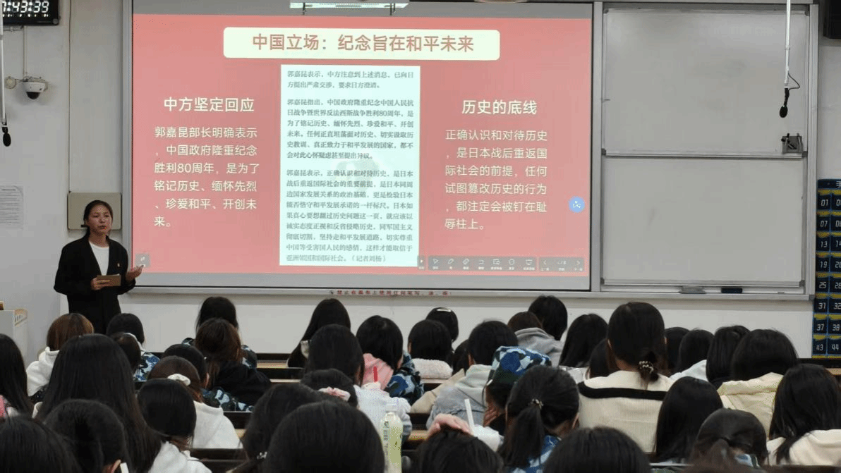 微团课环节中,主讲人从战旗精神、历史记忆、青年使命等角度切入,以小见大,引导新生在回望历史中强化国防认同,在时代叙事中激发爱国热情。贴近青年的话语方式与情感共鸣,使国防教育真正入耳入心。