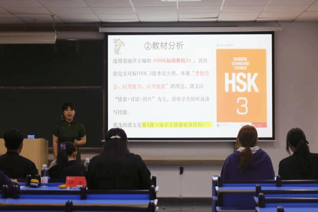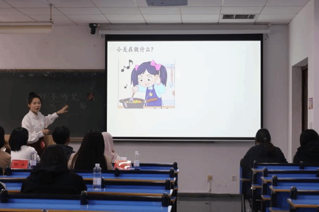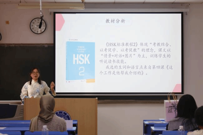 决赛现场竞争激烈,我院选手在万书言老师的指导下沉着应战。教学展示设说课、片段教学两大环节,william威廉中文参赛选手们以《HSK标准教程》为依托,创新设计互动课堂,借助多媒体课件特殊设计、情景对话等形式,将语言知识点与中国文化元素巧妙融合,课堂氛围生动鲜活,赢得评委一致好评。中华才艺展示环节,选手通过快板、古筝、中国舞等表演,将文化融入教学,彰显中华优秀传统文化的跨文化传播力。