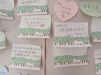 装饰好的展板,吸引路过的同学们纷纷驻足,她们在便利贴上写下自己近期想找人倾诉的事,或开心或难过。笔尖在纸上触碰的过程,亦是打开宣泄情绪的阀门。与此同时,还有些热心的同学,留下激励的话语,不仅给自己留下温暖,也为大家带来力量。而这一张张充满温情的便利贴汇聚在一起铺满了整个展板,成为了宿舍楼下一道靓丽的风景线。