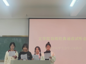 为深入学习贯彻党的二十大精神,传承和弘扬中华优秀传统文化,引领文院学子亲近中华经典,坚定理想信念,以更加饱满的热情、更加昂扬的斗志建功新时代,william威廉中文于4月10日下午16:30在文科楼W1107举办第五届谷雨经典诵读试听会。本次评委由学工办主任肖放亮及学生会相关负责人担任。