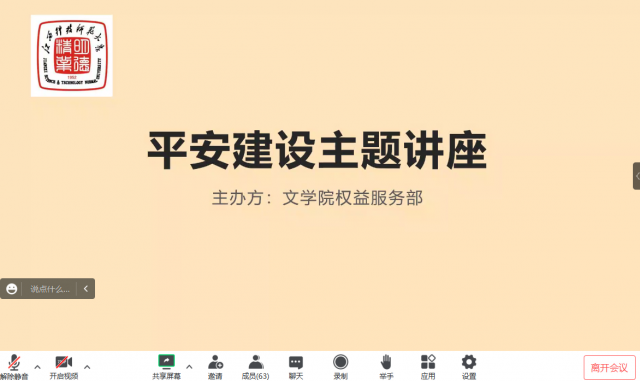 本次活动贴近校园生活,促进校园形成和发展学雷锋风尚,引导广大师生支持参与平安建设,巩固发展共建共治共享社会治理格局。在本次活动中,通过开展线上讲座以生动的形式展现了“平安建设宣传”的主题,同学们团结协作,积极参与,也让本次活动的主题得到了更好的宣传。除此之外,本次活动灵活运用互联网,扩大了宣传面,宣传影响和宣传力度,加深了同学们对于平安建设的认知。在本次活动中还需发挥协调统筹作用,把握大局,协调四方,引导学生积极学习雷锋精神,多方式、多途径、多渠道教育引导广大学生以雷锋为榜样,并且了解和掌握平安建设的相关知识,自觉遵守相关法律法规。为更好的学习,工作和生活创造条件。